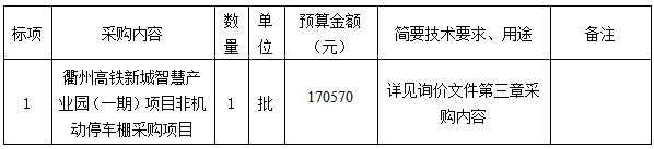 附件:衢州高鐵新城智慧產(chǎn)業(yè)園(一期)項目非機動停車棚采購項目詢價文件