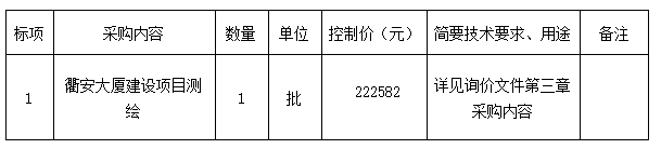 參照《衢州市國資委關于印發(fā)<衢州市國有企業(yè)采購管理辦法(試行)>的通知》(衢國資發(fā)[2020]36號)規(guī)定,衢州市智信工程咨詢有限公司受衢州市信安產(chǎn)業(yè)投資集團有限公司、浙江衢交建設工程有限公司的委托,就衢安大廈建設項目測繪進行詢價,本項目為非依法必招項目,現(xiàn)請合格供應商參加投標。
