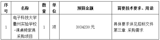 項目名稱:電子科技大學衢州實驗學校-課桌椅家具采購項目