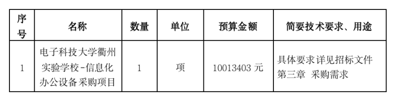 項目名稱:電子科技大學衢州實驗學校-信息化辦公設備采購項目