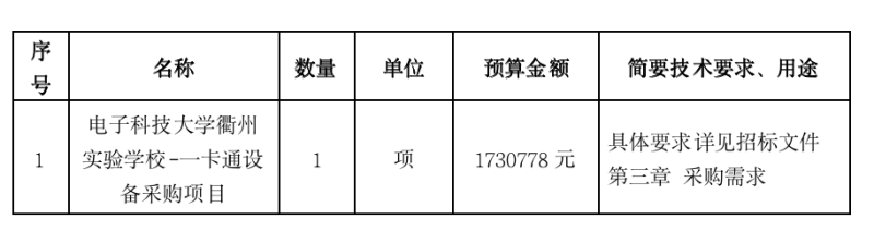 項目名稱:電子科技大學衢州實驗學校-一卡通設(shè)備采購項目