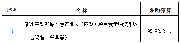 一、采購項目名稱:衢州高鐵新城智慧產(chǎn)業(yè)園(四期)項目食堂物資采購。