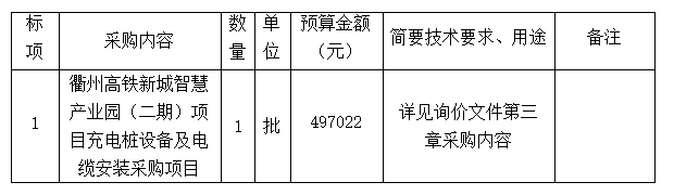 附件1:衢州高鐵新城智慧產(chǎn)業(yè)園(二期)項(xiàng)目充電樁設(shè)備及電纜安裝采購詢價(jià)文件