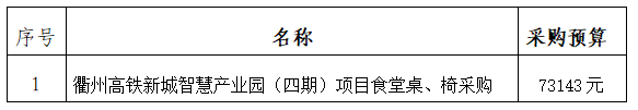 一、采購項(xiàng)目名稱:衢州高鐵新城智慧產(chǎn)業(yè)園(四期)項(xiàng)目食堂桌、椅采購。
