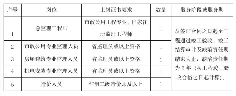 根據(jù)本項目特點(diǎn),招標(biāo)人提出以下監(jiān)理人員要求,投標(biāo)人應(yīng)根據(jù)本條要求配置監(jiān)理人員,并計算相應(yīng)的投標(biāo)報價。