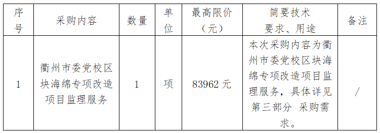 根據(jù)《衢州市國有企業(yè)采購管理辦法(試行)》規(guī)定并參照《中華人民共和國招標(biāo)投標(biāo)法》、《中華人民共和國政府采購法》等有關(guān)規(guī)定,衢州市兩山工程咨詢管理有限公司受衢州市智慧產(chǎn)業(yè)投資發(fā)展有限公司的委托,對衢州市委黨校區(qū)塊海綿專項(xiàng)改造項(xiàng)目監(jiān)理服務(wù)進(jìn)行詢價采購,歡迎準(zhǔn)時參加。