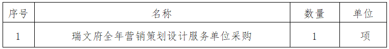 一、采購項(xiàng)目名稱:瑞文府全年?duì)I銷策劃設(shè)計(jì)服務(wù)單位采購