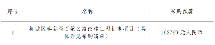 一、項(xiàng)目名稱:柯城區(qū)弈谷至石梁公路改建工程機(jī)電項(xiàng)目