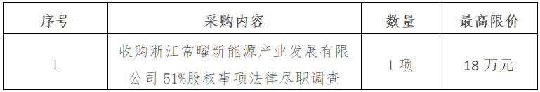 二、項(xiàng)目名稱:收購(gòu)浙江常曜新能源產(chǎn)業(yè)發(fā)展有限公司51%股權(quán)事項(xiàng)法律盡職調(diào)查
