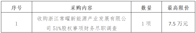 二、項(xiàng)目名稱:收購浙江常曜新能源產(chǎn)業(yè)發(fā)展有限公司51%股權(quán)事項(xiàng)財(cái)務(wù)盡職調(diào)查