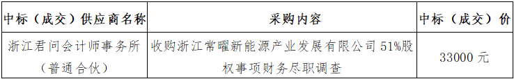 五、采購內(nèi)容:收購浙江常曜新能源產(chǎn)業(yè)發(fā)展有限公司51%股權事項財務盡職調(diào)查。