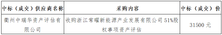 五、采購(gòu)內(nèi)容:收購(gòu)浙江常曜新能源產(chǎn)業(yè)發(fā)展有限公司51%股權(quán)事項(xiàng)資產(chǎn)評(píng)估。