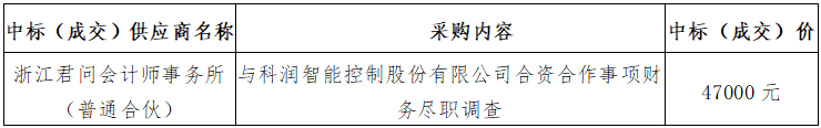 三、標項名稱:與科潤智能控制股份有限公司合資合作事項財務(wù)盡職調(diào)查