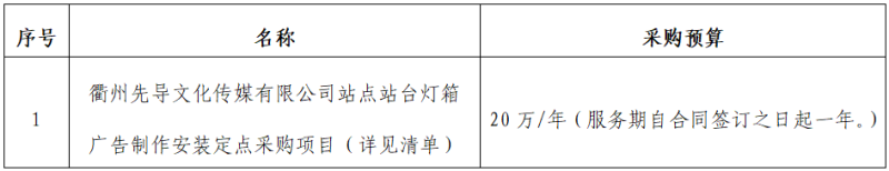 一、項目名稱:衢州先導(dǎo)文化傳媒有限公司站點站臺燈箱廣告制作安裝定點采購項目