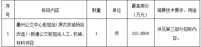 二、項(xiàng)目名稱:衢州公交中心樞紐站(原農(nóng)貿(mào)城場(chǎng)站改造)-新建公交樞紐站人工、機(jī)械、材料項(xiàng)目