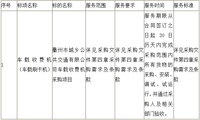 二、項(xiàng)目名稱:衢州市城鄉(xiāng)公共交通有限公司車載收費(fèi)機(jī)采購項(xiàng)目