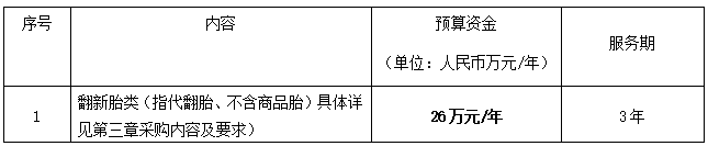 通過招標(biāo)確定一名中標(biāo)人為浙江衢州公交集團有限公司汽配采購項目翻新胎類提供供貨服務(wù)(具體以合同簽訂之日為準(zhǔn))。