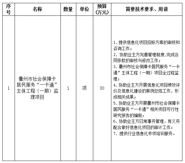 項(xiàng)目名稱:衢州市社會(huì)保障卡居民服務(wù)“一卡通”主體工程(一期)監(jiān)理項(xiàng)目