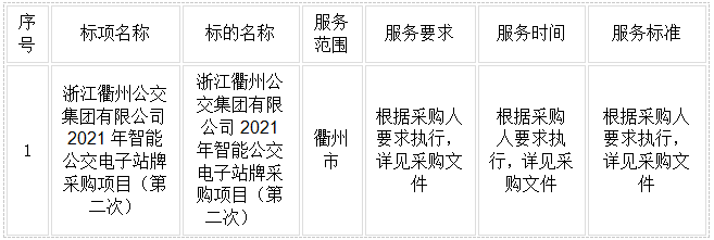 二、項目名稱:浙江衢州公交集團有限公司2021年智能公交電子站牌采購項目(第二次)