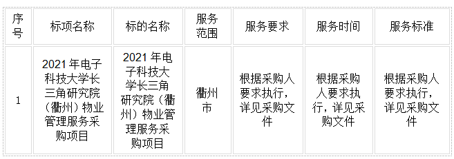 二、項目名稱:2021年電子科技大學長三角研究院(衢州)物業(yè)管理服務采購項目