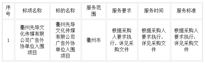 二、項目名稱:衢州先導(dǎo)文化傳媒有限公司廣告外協(xié)單位入圍項目