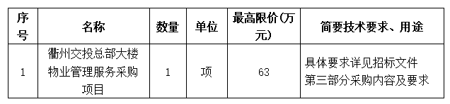 項(xiàng)目名稱:衢州交投總部大樓物業(yè)管理服務(wù)采購項(xiàng)目