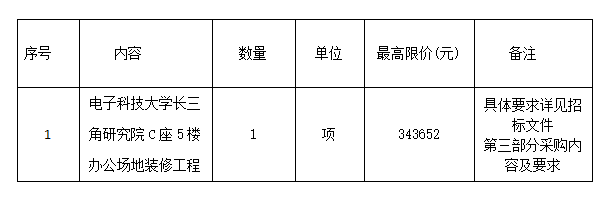 二、項目名稱:電子科技大學長三角研究院C座5樓辦公場地裝修工程