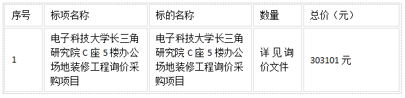 二、項目名稱:電子科技大學長三角研究院C座5樓辦公場地裝修工程詢價采購項目