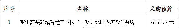 一、采購(gòu)項(xiàng)目名稱:衢州高鐵新城智慧產(chǎn)業(yè)園(一期)北區(qū)酒店雜件采購(gòu)。
