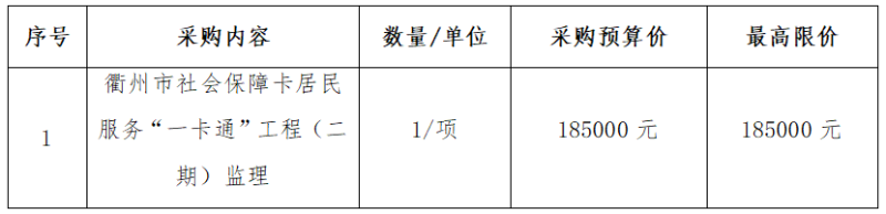 二、項(xiàng)目名稱:衢州市社會保障卡居民服務(wù)“一卡通”工程(二期)監(jiān)理項(xiàng)目