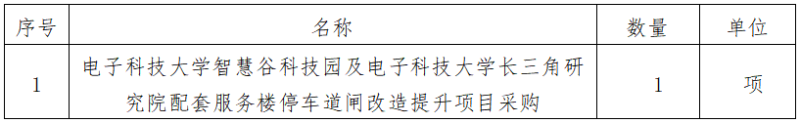 一、采購項目名稱:電子科技大學(xué)智慧谷科技園及電子科技大學(xué)長三角研究院配套服務(wù)樓停車道閘改造提升項目
