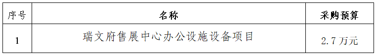 一、采購項目名稱:瑞文府售展中心辦公設施設備項目