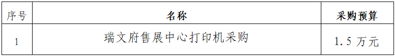 一、采購項(xiàng)目名稱:瑞文府售展中心打印機(jī)詢價(jià)采購項(xiàng)目