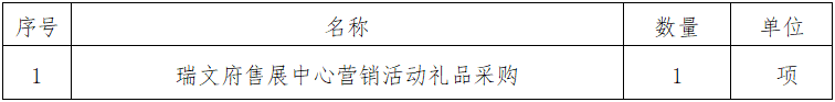一、采購項目名稱:瑞文府售展中心營銷活動禮品采購