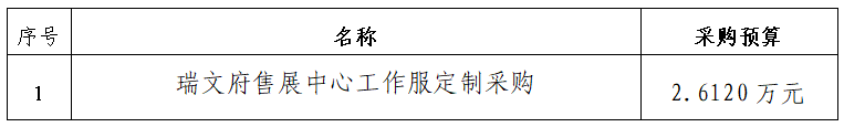 一、采購(gòu)項(xiàng)目名稱:瑞文府售展中心工作服定制采購(gòu)詢價(jià)項(xiàng)目