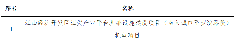 一、采購項目名稱:江山經濟開發(fā)區(qū)江賀產業(yè)平臺基礎設施建設項目(南入城口至賀濱路段)機電項目