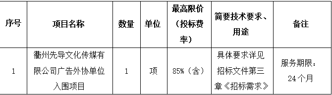 項目名稱:衢州先導(dǎo)文化傳媒有限公司廣告外協(xié)單位入圍項目