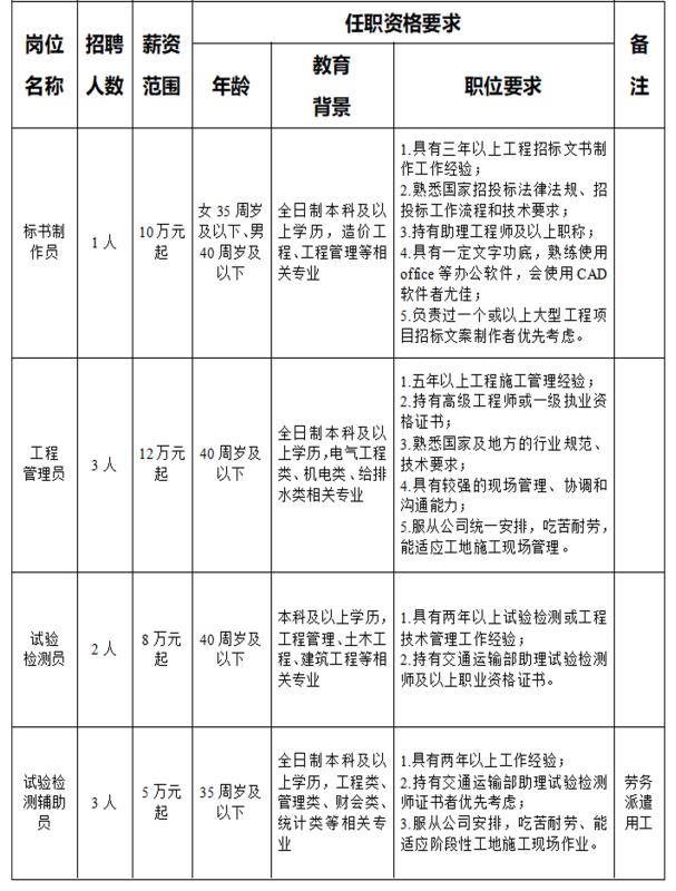 衢州市交通投資集團有限公司根據(jù)集團發(fā)展需要,擬面向社會公開招聘工作人員,具體工作單位由集團根據(jù)工作需要,在集團本部和全資子公司之間進行統(tǒng)籌安排。具體招聘事項公告如下: