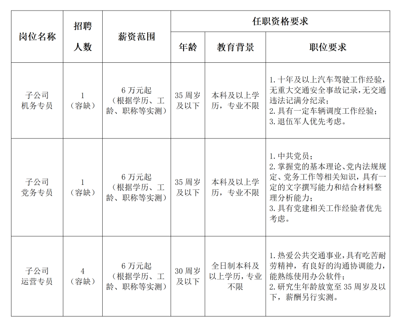 現(xiàn)因工作需要,委托衢州市慧城人才開發(fā)有限公司(以下簡稱慧城人才公司)面向社會公開招聘6名工作人員,具體工作單位統(tǒng)籌安排。具體招聘事項公告如下: