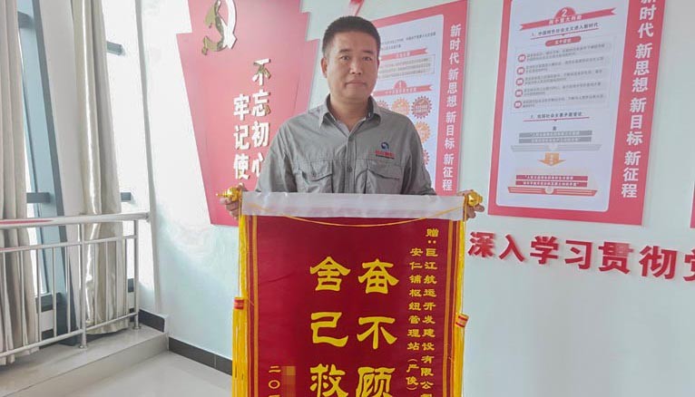 7月10日,市民張女士一行人把一面寫有“奮不顧身舍己救人”字樣的錦旗送到了集團(tuán)下屬子公司——衢州市巨江航運(yùn)建設(shè)開發(fā)有限公司下轄安仁鋪航電樞紐管理站,感謝該站職工嚴(yán)俊不顧自身安危,冒雨下河救人的義舉?!八攘巳酥鬀]留名字就走了,我們打聽了很